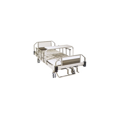 台式床头床尾、ABS压塑床面、折叠式四档铝合金护栏、6寸中控制动脚轮、翻板式餐桌