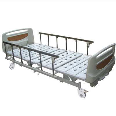 该床外型美观、坚固耐用,可承重250KG以上,摇手柄转动灵活并有两极空转限位装置。无噪声的静音脚轮(对角刹车),使床移动灵活、轻巧、方便。配铝合金护栏、不锈钢输液架、引流挂钩。