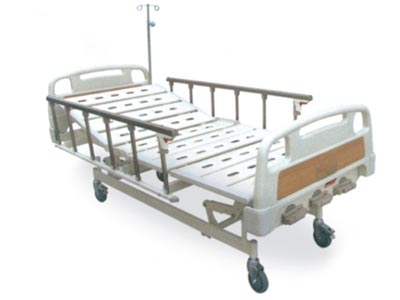 双向到位保护螺杆;中控脚轮刹车系统;低位稳定支撑系统;角铝护栏;冲孔床面板;P.P床头床尾板;引流挂钩;不锈钢输液架。