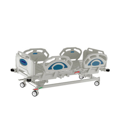 3. 塑料护栏,收放灵活,头部护栏处设有可供医患操作的手控器,方便使用,更人性化,并可通过床尾锁定