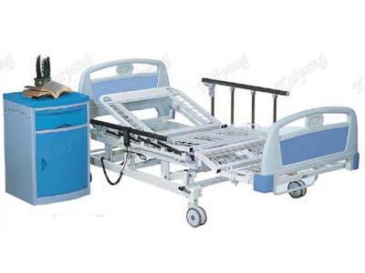 高级医用电机系统(电机四个、电控箱一个、控制手柄一个);低位稳定支撑系统;中控脚轮刹车系统;角铝护栏,网状式床面板;P.P床头床尾板,引流挂钩;不锈钢输液架;背部ICU。