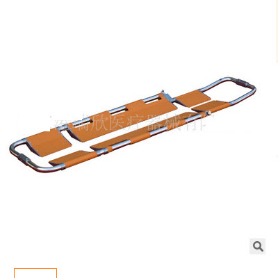 采用分离型刚性结构,转送骨折及重伤病员。两端设有离合装置,使担架分离成左右两部分。在不移动病人的情况下,迅速将病人铲入或从病人体下抽出担架。担架长度根据人身长可作随意调节。担架一端(脚部)采用窄框架结构。