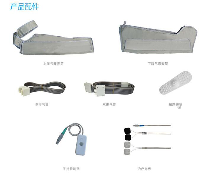 通过对多腔气囊有序的反复充气放气,形成了对肢体和组织均匀有序的挤压,起到促进血液和淋巴的流动及改善微循环的作用,能够直接或间接治疗与血液淋巴循环相关的储多疾病,通过按摩作用防止肌肉纤维化,加强肢体的含氧量。