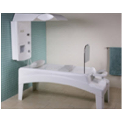 Vichy床:全塑材质的床非常舒适,特别适用于湿浴领域。床表面采用优质亚克力材质。其头靠高度可调、臂托与防喷溅挡板可拆卸,因此,舒适度极高。