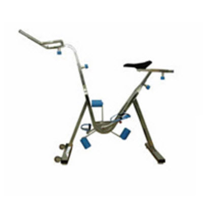 配合音乐在水中治疗(健身)。此系列产品可加强全身肌肉运动,加速血液循环从而达到健康而有效的健身效果。水下康复健身自行车可用于水深110cm到150cm的水池。可根据不同需要增加或减少阻力器的数量(5个不同位置),阻力调节可从225W到300W,高度可调。更适用于水池表面有所倾斜,不是完全平坦的池底。