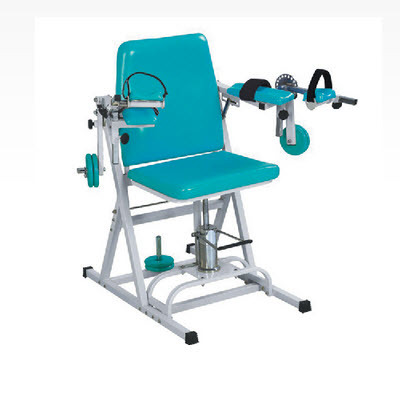 技术参数;1.104X123X120cm2.坐垫高度调节范围0-18cm4.角度调节支架调节角度范围0-155.靠背垫角度调节范围90-1006.前臂支架调节角度范围0-1507.升降支架调节范围0-15配重快1.8KG,4块,*大载荷135KG功能:用于持续性肘关节牵引,适用于肘关节屈伸活动障碍患者,牵引的重量及方向、座椅高度、固定部位均可调节。