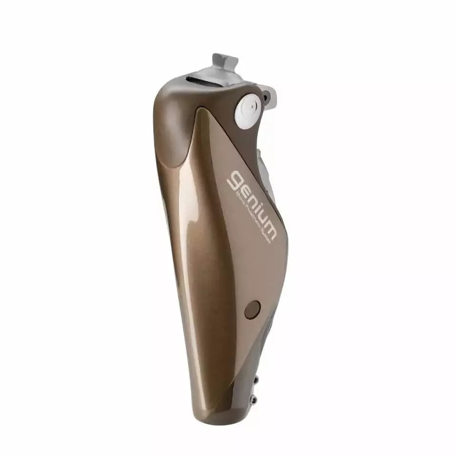 Genium智能仿生膝关节,采用仿生科技,在膝关节中采用先进的智能技术,内置航天系统使用的陀螺仪技术、汽车气囊系统的加速度计技术,以及角度传感器、踝关节承重传感器和力矩传感器,还有智能微处理器等电子元件。利用机械与电子的完美结合,实时监测旋转速度及方向的改变,实时监测水平及水质方向的加速度,实时监测膝关节屈曲角度及速度。智能微处理器为用户精心计算,确保用户行走的稳定。