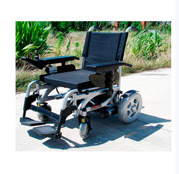 可收起来的折叠电动轮椅,快取式电池箱,高强度铝合金车体,电池箱可分离,便于随时充电。