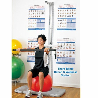 美国赛乐健身康复工作站是第一个为用户力量设计的小型全身康复系统。可以完成全身的力量训练,平衡训练和核心训练。它由墙式工作站、专业训练台、三个SCP训练球(分别为黄、红、绿三种颜色)、两个瑞士爱力稳定性训练垫(分别为蓝、绿两种颜色)组成。