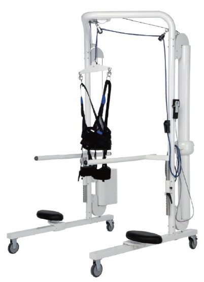 康复减重装置适用于因不能支持下肢重量,独立行走的患者。参数可以通过手持线性远程遥控,配有LED灯,体重调节范围可观。