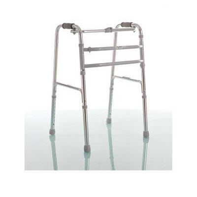 高强度铝合金助行架,表面氧化,可左右向前交替移动,可折叠,携带方便,主要用于上肢功能完善而且下肢功能损伤较轻的患者。