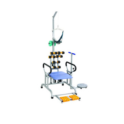 颈椎牵引,腰部肌肉训练、背部、脚部按摩增进血液循环。
