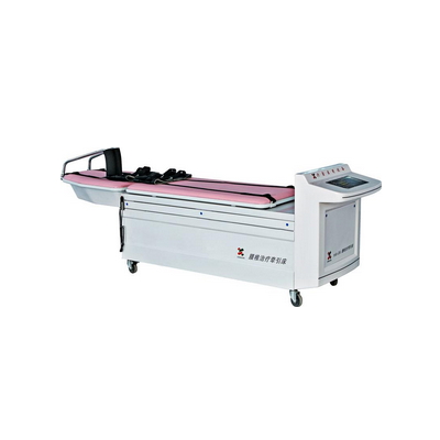 对腰椎病有独特的治疗效果。如对腰椎侧弯、腰椎生理弧度消失或后凸的病人,可同时进行俯卧平直、成角牵引,使病人提高倾斜角度,在增大椎间隙的同时同时产生负压牵引,达到治疗的目的。对腰后小关节错位、腰肌劳损等有较好的疗效。在使用仰卧和俯卧牵引的同时,可结合本机的摇摆功能进行治疗。在使用安全方面采用软件控制、机械传动控制和手动控制。