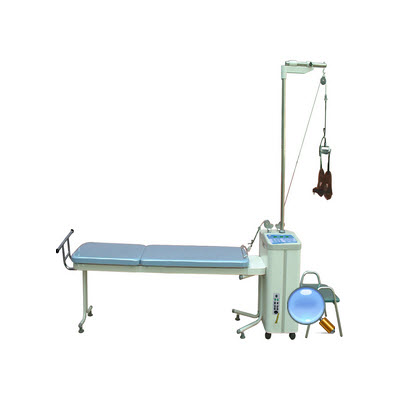 LK-02电动颈腰椎牵引床:微电脑控制,数码显示,电动上力,同时治疗两个病人“颈椎牵引”和“腰椎牵引”2、持续、间歇两种牵引方式任选,间歇时间连续可调,并