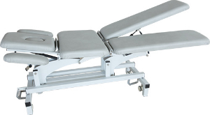 BH-SFC-6型多体位治疗床可根据治疗需要调节不同的仰、卧体位.三折的卧位调节,方便对颈、胸、腰椎及下肢病患者的不同屈伸体位的治疗;可调的俯卧位选择,可为一些肺部相关疾病患者提供有效、便捷的引流体位,并增加舒适感;双下肢分离可调,使患者单个下肢可独立地置于各种治疗及放松体位,此设计在坐位时可有效提供靠背作用;脚控高度控制装置及不同体位调节,可*大限度降低治疗师的工作强度,确保治疗效果和效率。