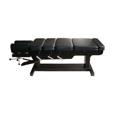 整脊床是一种卧位脊椎矫正专用设备。该设备配置了颈椎、胸椎、腰椎、骨盆部位四套顿压滑落装置(一种定向,定量,定点力的闪动装置)。整脊床上的顿压滑落装置对于不同性质的椎体脱位,采用不同的身体位置和推按位置的变化实现了全脊椎无旋转闪动矫正。降低了医疗风险,大幅提高了治疗效率和治疗效果。