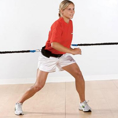配有氯丁橡胶衬垫的 4 英寸( 11.6 厘米)腰带保证弹性牵拉绳可以进行 180 度范围内的旋转,因此训练者可以在不间断承受阻力或助力的情况下改变方向