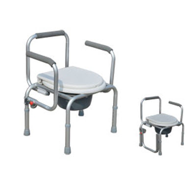 钢管喷涂白色车架,带大便器, 扶手可旋转,座位高低可调。