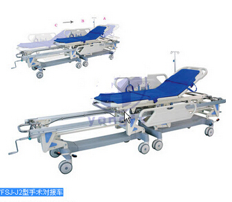 对接车主要结构采用优质铝材一次压铸成型。对接轨道采用高强度铝合金型材在床面运动过程中更平稳可靠。两单体车可升降调节,达到同一水平线,使床架可稳定滑移。床架滑移至某一单体上可自动锁紧,并设有保险装置。两单车均采用先进的中控刹车系统,在运动对接时更稳定可靠。对接车性能结构达到国际先进水平,能满足各医院手术室的需求,达到防止交叉感染的目的,是手术室理想的选择