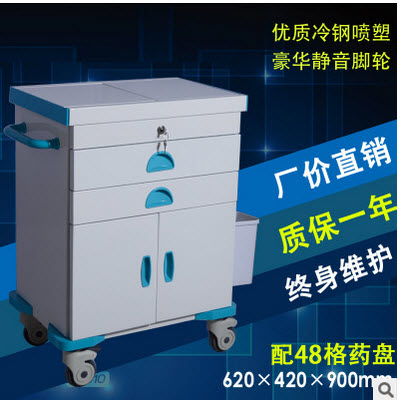 3:两个中抽屉规格580*400*100mm,第一个抽屉内置48格ABS药盘;下部对开门大储藏空间内置隔层板(把大空间分割成上下两个小空间);