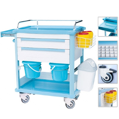 10.左侧有ABS推手,右侧配备消毒液锐器桶网篮。