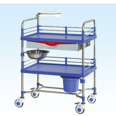 尚不配有器械盘,中部配有抽屉(内置隔断)和洗条盆,下部配有污物桶。