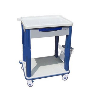 凹陷ABS模具成型工艺台面,带一中抽屉,内置分隔条,可自由组合抽屉;带双污物桶可360度旋转;底层带防撞带;豪华静音脚轮,对角刹车功能。
