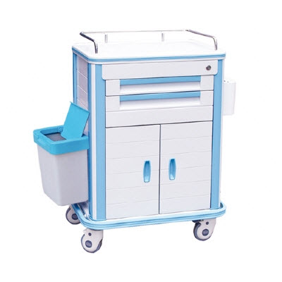 2.不锈钢护栏、ABS工作台面(加保护软玻璃)、防撞圈、钢塑柱、高级静音脚轮、杂物箱、资料袋、中控锁、垃圾桶;