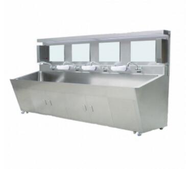 自动感应洗手池为手术医务人员洗手专用设备,采用人体感应自动给水,因此无需使用人员触摸,保证清洁。