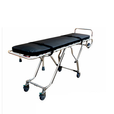 担架高度可随意调节,调节高度时按动手柄。需二名救护人员把担架推上救护车。采用防渗水泡沫软垫,背靠角度和腿部可调节,使伤病员躺卧舒适。本担架配有保险锁,运送病人时必须锁止。采用担架车与担架分离结构。