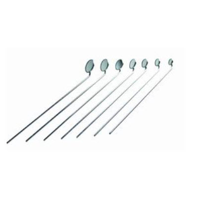 喉镜是一个有柄的圆形平面镜,镜面与镜柄相交呈120度,镜面的直径各有不同,