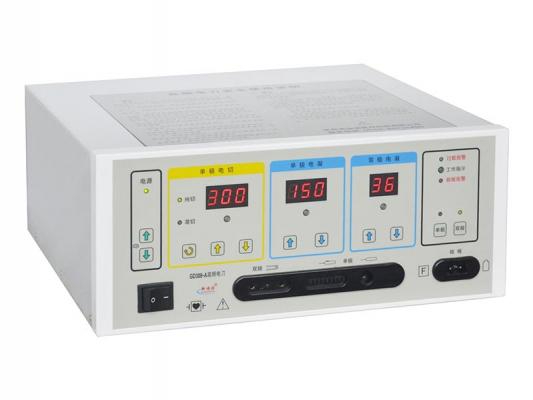 产品由主机及脚踏开关组成。主载频率为450kHz±10%。产品具有单极纯切、单极混切、单极电凝、双极电凝模式,根据不同负载下的最大输出功率的不同分:GD308-A型、GD308-B型、GD308-C型、GD308-D型、GD308-H型、GD308-P型。