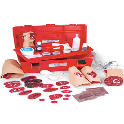 这一套包括更复杂的创伤,用于练习或测试更高水准的绷带包扎技术和病人护理,经济实用。整套模拟器置于手提箱中供货,包括: