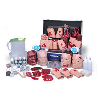 这一内容全面的紧急救护训练箱,包括大量可固定在真正的病人或是模型身上的练习品。伤口可缠、可粘、甚至弄出血,对志愿者和专业救护人员在烧伤、刀伤、四肢骨折和截肢等领域是个极好的挑战。非常适用对发生在公共场所灾难的模拟,如公共汽车车祸,或建筑物爆炸等等。整套模拟产品置于手提箱供货,