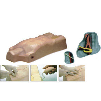 该模型用于颈部和股部中央静脉穿刺的真实训练,模型于这两个部位分别设有注射训练垫,可以反复使用、也可以进行更换。