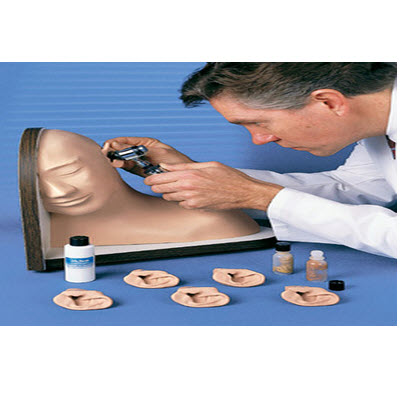 这款模型可用于耳内检查的练习。由一个头和6只可替换的耳朵组成,耳由弹性材料制成,内外结构极为逼真。其中5只耳朵着色,供不同的病理诊断,未着色的耳朵用于练习清除耳垢。模拟器提供两小管人造模拟耳垢, 9个35mm幻灯片(5个表现了如下病理,4 个由W44123补充说明),以及手提箱,不带耳镜。可检查如下健康和病理状态:
