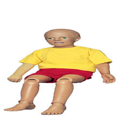 这款模型表现的是一名5岁儿童,四肢可旋转(带肘和膝关节),头部活动。适于练习基本的和高级的儿童护理措施如: