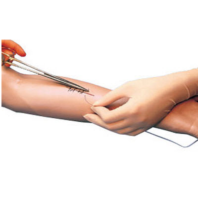 这款臂模型由柔软的乙烯树脂仿真皮肤覆盖于可针缝的泡沫上制成,能进行数百次缝合。手臂上有3处大伤口,以及臂、手和手指上若干个小切口,供多次缝合练习。柔软坚韧的用料保证了在抽紧缝线时不会撕裂。 一同提供外科缝合基本用品。
