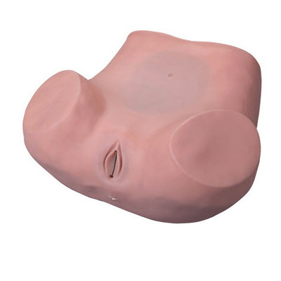 它由外皮、固定腹腔脏器、子宫、子宫直肠凹血囊、阴道、直肠水囊、支架组成。外皮套在整个模型的外部,固定腹腔脏器的装置用于将各功能脏器固定在它们各自的位置上。子宫直肠陷凹水囊、直肠水囊、子宫、阴道四个部分镶嵌在固定腹腔脏器装置内。支架用于托起整个模型,保持模型臀部抬高,便于操作。子宫直肠凹血囊,直肠水囊是一个囊性结构,其上连接了两根引流管,用于往内注入液体。