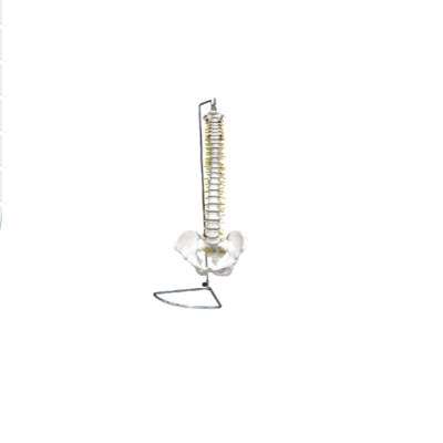 这款模型主要特征包括:硬脊椎、骨盆、骶骨、枕骨、脊椎动脉、神经动脉、腰椎间盘和半腿骨等,不锈钢支架。