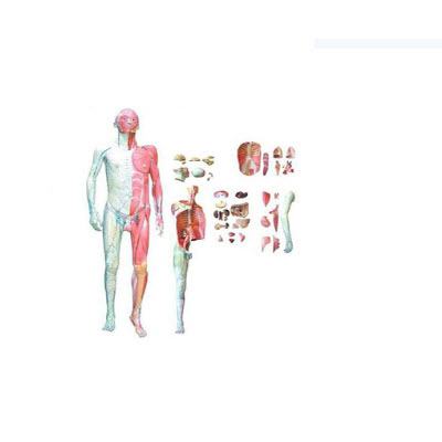 该模型由男性头颈部、躯干和四肢组成,示人体全身肌肉、全身血管神经,大部分肌肉及全部内脏能拆下示教,可分解成28部件。