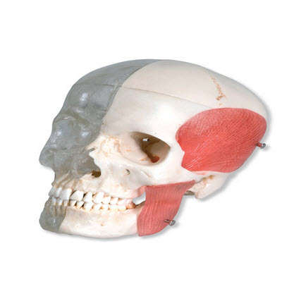 3B Scientific?*新推出系列颅模型,它首次使*细微的解剖结构得到绝对自然的再造。由3B BONElike?所制骨头形象逼真,有着绝对的自然手感和几乎与真骨一致的重量。 将一半透明和一半骨颅相结合的头颅模型使得解剖教师并置展示其它颅模型无法展现的结构。右半透明颅骨可用于研究重要的解剖细节,如鼻窦的位置等。因而,与左边骨颅相结合,可直接移至否则无法直视的结构,简洁明了。透明下颌骨可以极清晰地显示牙周围腔和牙根。牙齿可拆卸作详细研究。此外,外咀嚼肌(咬肌、颞肌)在半边骨颅显示。为了演示咀嚼肌运动,下颌灵活移动装置。这些特点对牙科医生研究特别珍贵。头颅可被拆卸为头盖骨和颅底两部分、鼻中隔、完整下颌和双侧咀嚼肌。