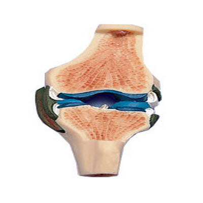 人体膝关节的前切面。骨结构、半月板、关节软骨、滑膜和关节韧带以色彩表示