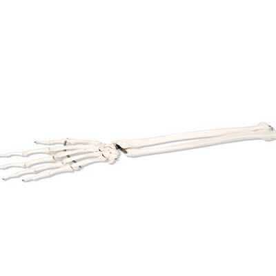 手骨骼,带有部分尺骨和桡骨,不锈钢丝紧连,左