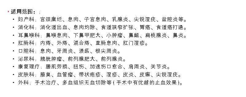 本产品在医疗机构中使用,用于妇科浅表组织凝固以及炎症的辅助理疗。