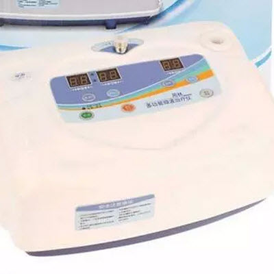 将微波理疗线和仪器,微波理疗线和理疗头牢固连接,插上电源线,按下仪器后面的电源开关,