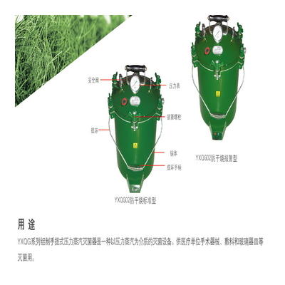 YXQG系列不锈钢手提式压力蒸汽灭菌器是一种以压力蒸汽为介质的灭菌设备。可供农村卫生室、乡镇卫生院、社区医
