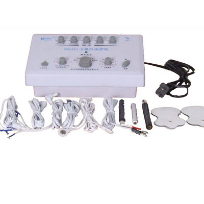 该仪器有5路输出,配带针夹线、粘胶电极片、电极片导连线、穴位探测棒、。