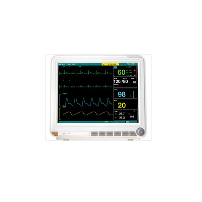 本款病人监护仪采用15英寸液晶显示屏,全导联心电监护,可监护心电、心率、血氧饱和度、无创血压、体温、脉搏、体温、呼吸率、呼末二氧化碳波形,适用手术室、ICU、CCU病房,整机通过CE认证。