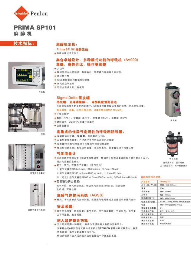 -----------以下"麻醉机 PRIMA SP101"相关信息来自网络,仅供参考不作购买下单依据------------
